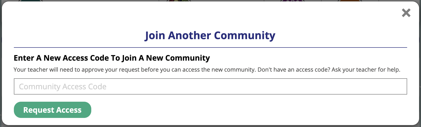 3. Once you’ve typed in the access code, click the “Request Access” button. That’s it! You just sent a request to that teacher to join their community. Once they approve or deny access, you will receive a message in your My Messages letting you know.